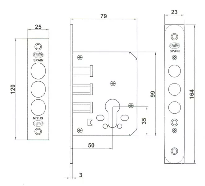 AMIG Reteszzár Bev.Cil.Zár.3Csap.Szat.Nik.Ker 103-50