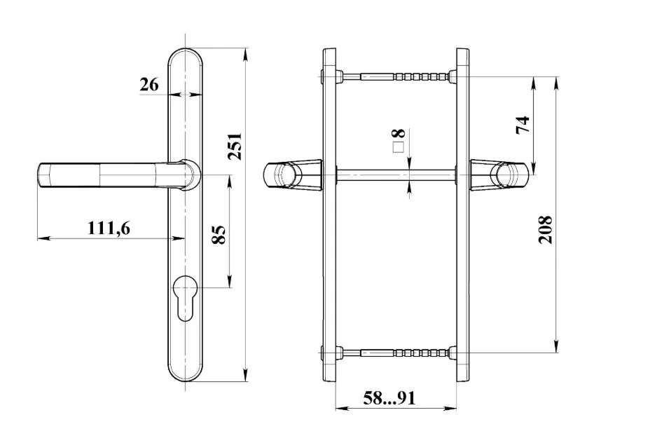 Ajtókilincs 85/26/208/8 Rugós Fekete D. Ral9005