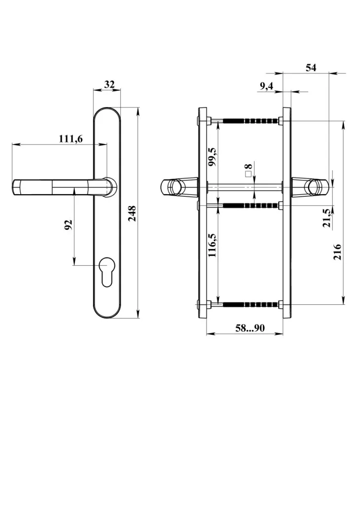 Ajtókilincs 92/32/216/8 Rugós Antracit D. Ral7016 Széles