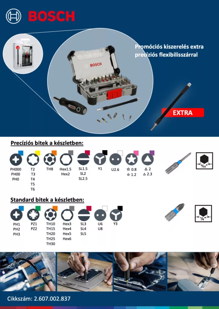 Bosch 2607002837 precíziós csavarhúzó bitkészlet rugalmas hosszabbítóval 43 részes.