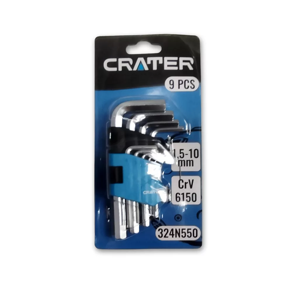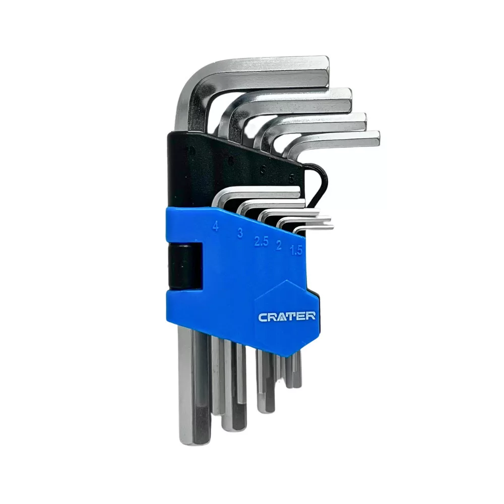 A CRATER 9 darabos rövid imbuszkulcs készlet precíz illeszkedést és megbízható nyomatékátvitelt biztosít különböző szerelési feladatokhoz.