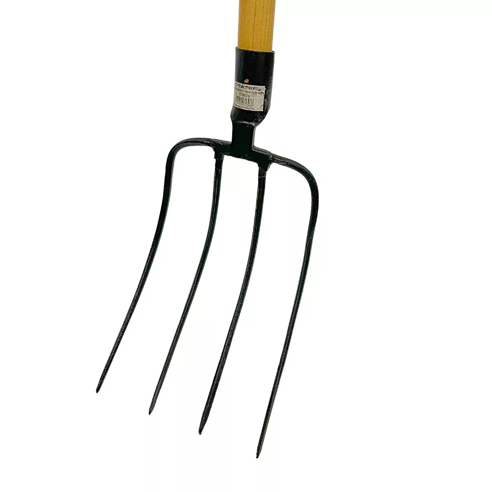 Ez a kovácsolt trágyavilla ideális eszköz a kerti munkákhoz, különösen trágya, komposzt vagy egyéb laza anyagok szórásához és keveréséhez. A 4 ágú kialakítás biztosítja a hatékony munkavégzést, miközben erős, mégis rugalmas szerkezete lehetővé teszi a könnyed és gyors munkát. A villa kovácsolt acélból készült, így rendkívül tartós, ellenáll a kopásnak és képes elviselni a nehéz igénybevételt. A nyél erős fából készült, hosszú élettartamot biztosítva, miközben könnyű és kényelmes használatot tesz lehetővé.
