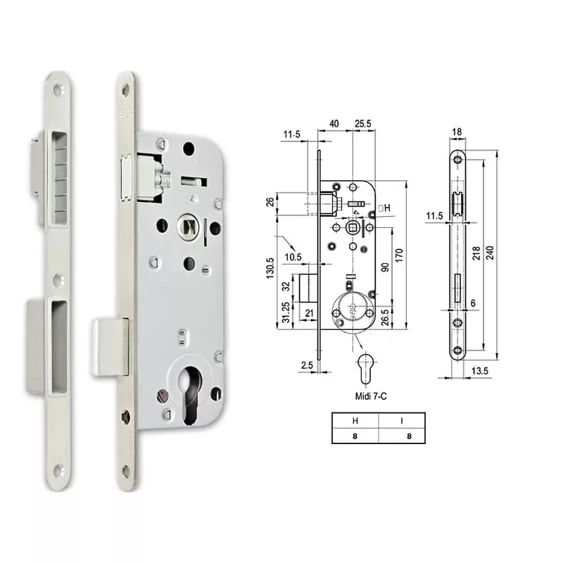 Cil.Bevésőzár 7 cm 40/90 Magnet Midi 7-C Elzett Inox