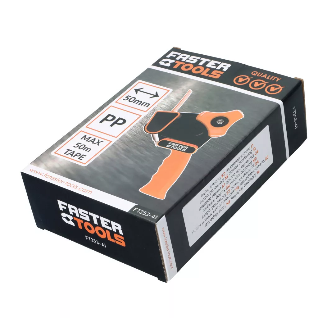 A FASTER TOOLS FT353-41 szalagos lezáró egy praktikus eszköz, amely megkönnyíti a dobozok és csomagok gyors és kényelmes lezárását. Ergonomikus fogantyújával hosszabb használat során is kényelmes használatot biztosít. Az integrált fémvágó lehetővé teszi a szalag egyszerű és pontos vágását. A műanyag és fém elemeket kombináló masszív konstrukció garantálja az eszköz tartósságát és megbízhatóságát.