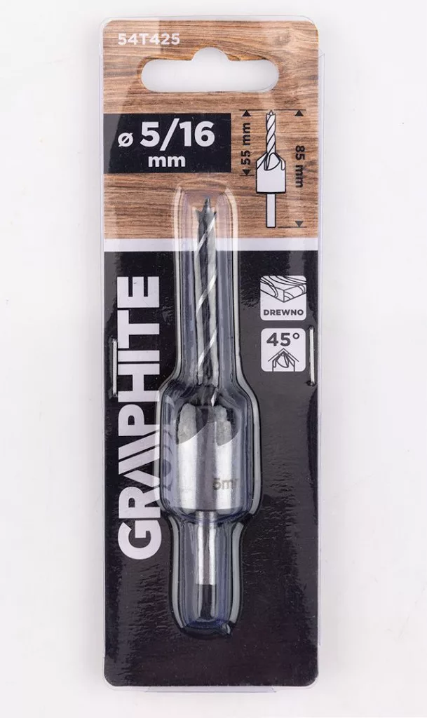 A GRAPHITE 54T425 5 mm/16 mm-es fafúrója 5 mm-es fúróátmérővel, 16 mm-es fazettás átmérővel és 85 mm-es teljes hosszal rendelkezik. Hengeres tokmányal felszerelve, süllyesztett rögzítőcsavarok furatainak fúrásához vagy további furatok süllyesztéséhez ajánlott. A GRAPHITE fa fazettás fúrószár jó kiegészítője lesz minden barkácsoló felszerelésének.