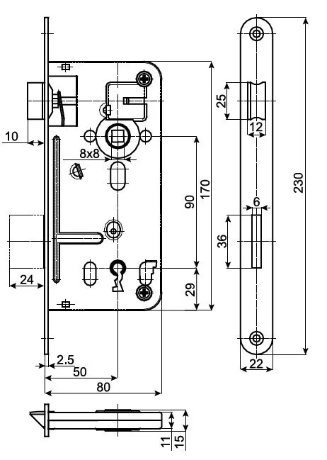 HOBES Bevéső Zár 8 cm 50/90 mm 1K. Normál 536A