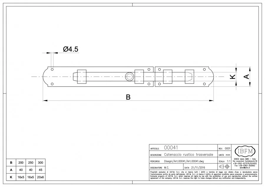 IBFM Épülettolózár 200*40 mm Fekete Réz Gombos 41