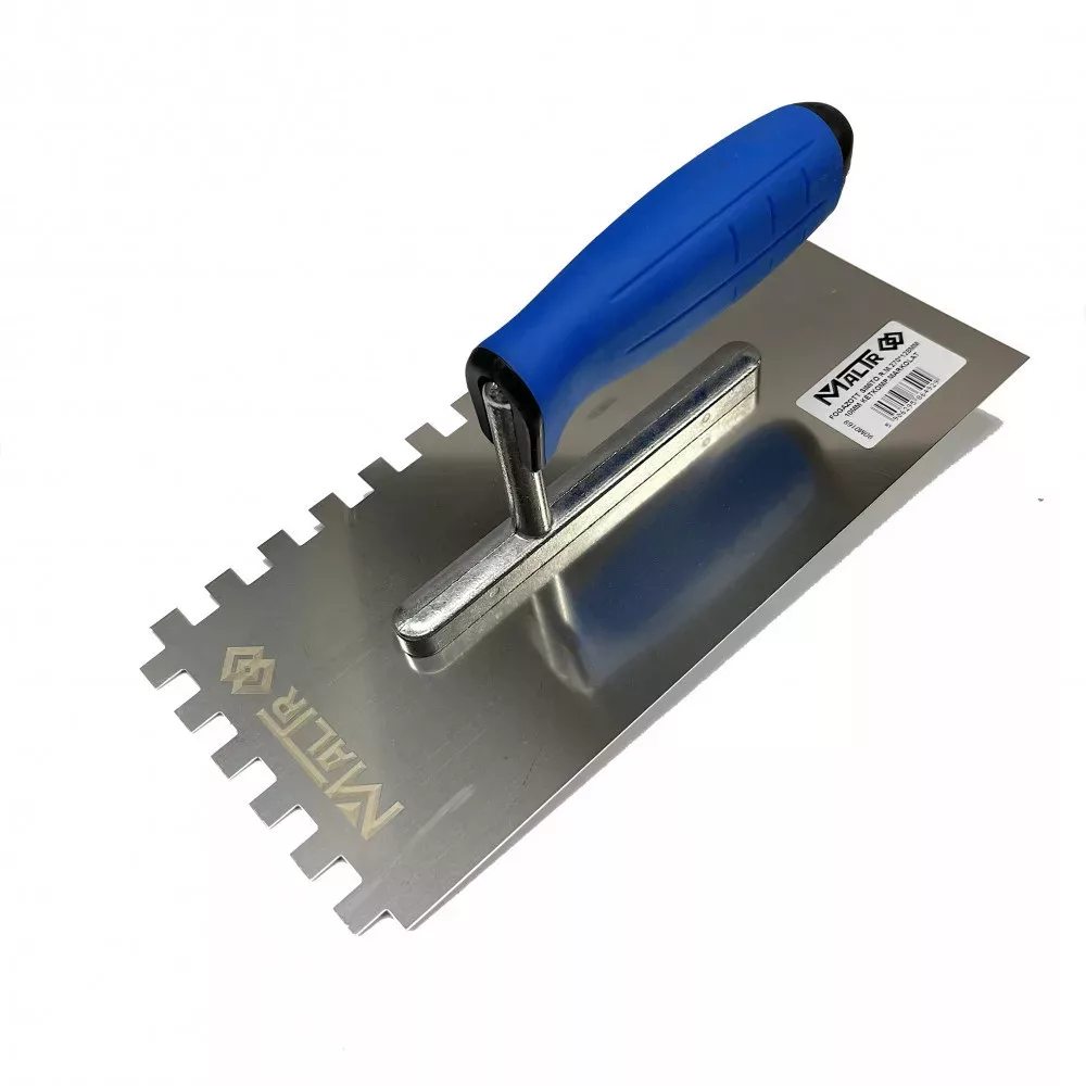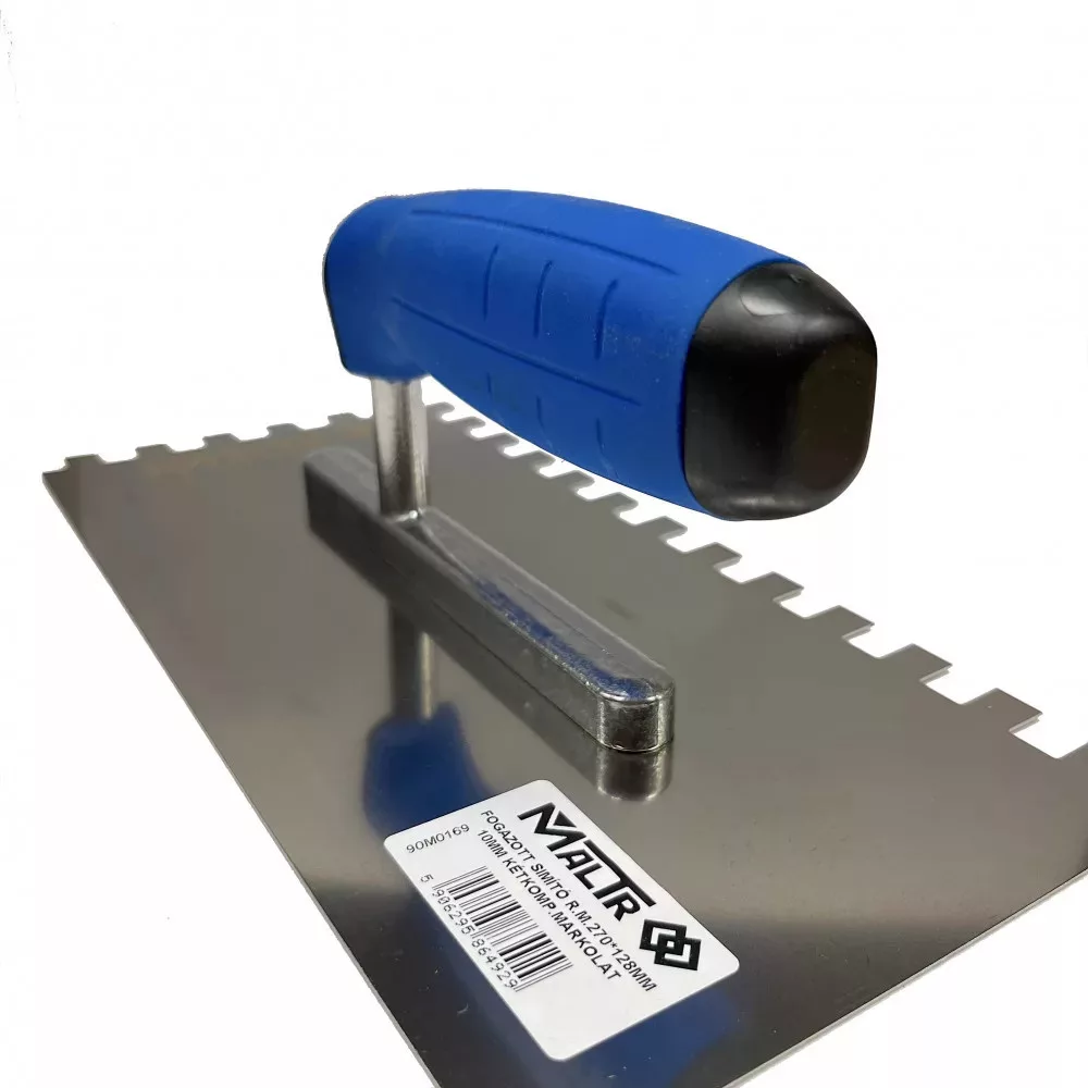 270 mm hosszú fogazott simító, 0,6 mm vastagságú rozsdamentes acélból. A fogak mérete 12 mm. Különböző anyagok felvitelére és fogazott simítására szolgál. Kétkomponensű markolattal, a csúszásmentes és kényelmes fogásért. A MALTR márka szakembereknek készült.