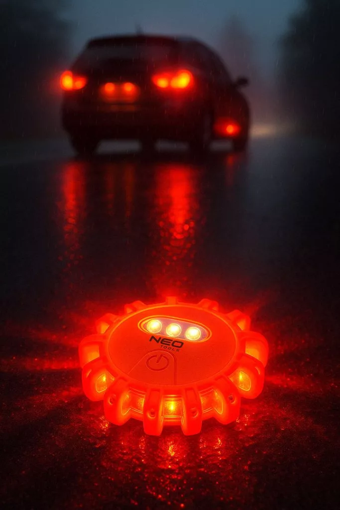 A NEO TOOLS 99-128 közúti figyelmeztető fáklya egy fényjelző eszköz, amely 12 LED-del és 3 további LED-del van felszerelve, amelyek fáklyaként működnek. A jelzőfáklya 5 féle megvilágítást kínál, működési ideje pedig akár 24 óra is lehet. A fáklya 3 AAA elemmel működik (nem tartozék). A praktikus mágnesnek köszönhetően könnyen felszerelhető a jármű karosszériájára. A NEO TOOLS közúti figyelmeztető jelzőfáklya kevés helyet foglal az autóban, és jó láthatóságának köszönhetően messziről is biztonságot nyújt vészhelyzetekben. Állandó autófelszerelésként ajánlott.
