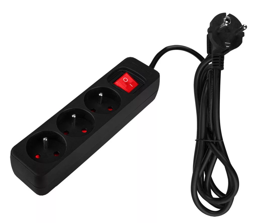 A NEO TOOLS 1,5 m, 3 x 1,5 mm², 3G, fekete, ON/OFF 90-182 hosszabbító egy 1,5 m hosszú hosszabbító kábel 3x 1,5 mm² rézhuzalokkal és 3 aljzattal. Jellemzője a fekete szín és az ON/OFF kapcsoló. A 230V-os 16A névleges áramával és 3680W-os maximális teljesítményével a legtöbb készüléket képes táplálni. A NEO TOOLS szalaghosszabbító E/F típusú dugóval és E típusú aljzattal rendelkezik. Hasznos, univerzális termék a biztonságos áramelágazáshoz.