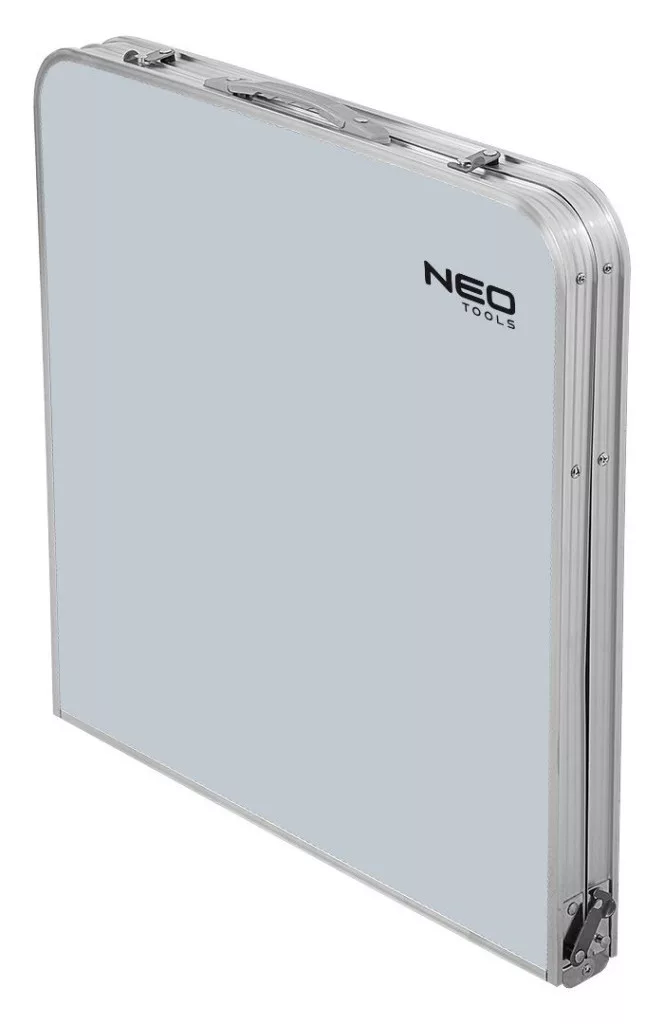 A NEO 63-159 kempingszett egy összecsukható asztal négy székkel együtt. Kialakításának köszönhetően a készlet egy kompakt tokba hajtható össze, amely a könnyű szállítás érdekében szállítófogantyúval rendelkezik. Az asztal állítható magassága lehetővé teszi az asztal megfelelő beállítását az ülőhelyhez képest. Az asztallap MDF-ből, a váz pedig könnyű alumíniumból készült. A székek szerkezete viszont acél, az ülés pedig tartós poliészter. Az asztal méretei: hossza - 120 cm, szélessége - 60 cm, magassága - 54 és 70 cm között. A zsámolyok paraméterei: hossza - 33 cm, szélessége - 27 cm, magassága - 35 cm. A méretek a tokba hajtogatva a következők: 60 x 60 x 10,5 cm. A készlet súlya 6,9 kg, a zsámoly maximális terhelhetősége pedig 110 kg. A NEO márkájú kempingszett a legkülönbözőbb felhasználási területekre ajánlott.
