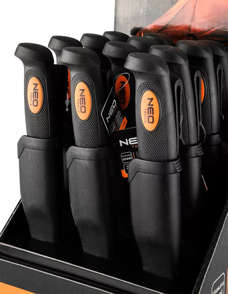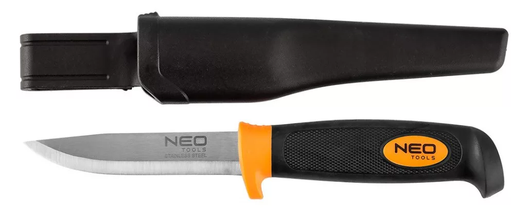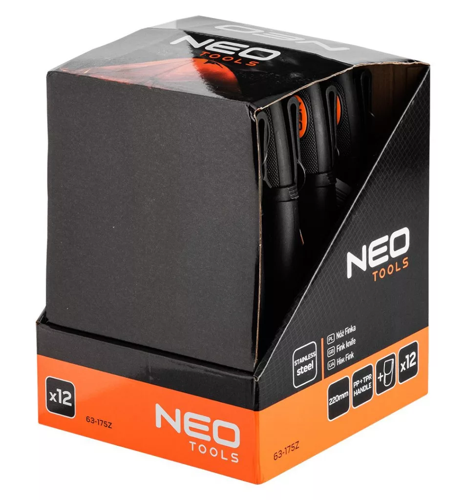 NEO 63-175Z UNIVERZÁLIS KÉS TOKKAL, 22CM, 3CR13 PENGE, 2KOMPONENSŰ NYÉL, RENDELÉSI EGYS: 12DB. 3Cr13 rozsdamentes acél pengével és robusztus PP és TPR markolattal. A kést 22 cm-es teljes hossz jellemzi. A készletet övcsipesszel ellátott műanyag tokkal együtt kínáljuk. A NEO TOOLS Fink kés egy sokoldalú termék, amely jól használható kempingezéshez, gombászáshoz, erdészeknek vagy gazdálkodóknak.