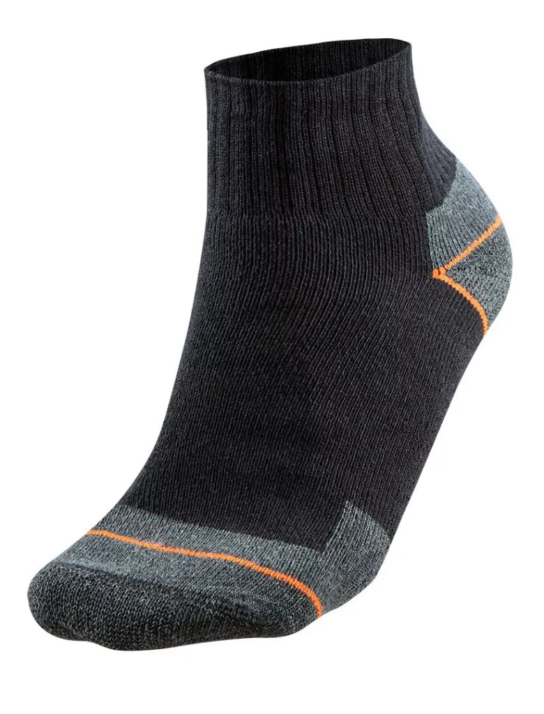 Speciális NEO zokni kiváló minőségű pamutból, poliészter és elasztán hozzáadásával, kényelmes és higiénikus munkavégzést biztosít. Az ujjakra és sarokra felvitt erősítések védenek a gyors kidörzsölődés ellen. Diszkrét fekete színben narancssárga-szürke betétekkel.