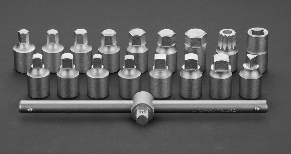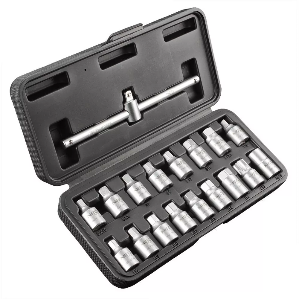 Olajleeresztő kulcsok 3/8", 18 db-os készlet. A 11-235 by NEO egy átfogó szerszámkészlet, amely a következőket tartalmazza: átmenő csavarkulcs gombbal, 7 db hatszögletű (Hex) - hím: 8, 9, 10, 12, 13,1, 14, 17 mm, 7 db négyzet alakú - hím: 7, 8, 10, 11, 13,1 mm, 5, 16", 3, 8", négyzet alakú - nő: 10 mm, háromszög alakú - hím: 10 mm, spline típusú furattal (Tamper Proof) M16. A kulcsok robusztus CrV acélból készülnek. A szerszámok az olajleeresztő csavarok lazítására és meghúzására szolgálnak. A készletet ráadásul praktikus műanyag tokban kínáljuk. Segítségével minden javítást gyorsan és kényelmesen elvégezhet. A NEO olajleeresztő kulcsok TÜV M+T tanúsítvánnyal rendelkeznek.