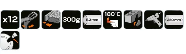 NEO 11,2 mm átmérőjű, 250 mm hosszú ragasztórúd. 12 darabos csomagolás. Tökéletesen beválik a barkácsműhelyben és a profi alkalmazásokban is, pl. padlószőnyegek fektetésében, bútorok készítésében. A NEO márka a professzionális igényeket is kielégíti.