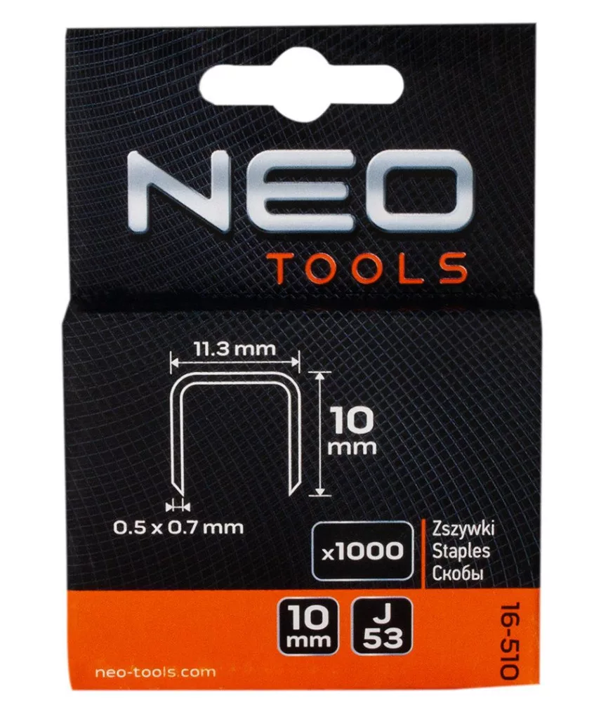 NEO TOOLS Tűzőkapocs 10 mm 1000 db J-Tip